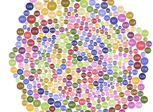 Now, let’s dive into the results. The bubble chart below shows the range of positive simulated WAR values. Each bubble has the first letter of the player’s name, and the number represents the simulation trial (1-100).